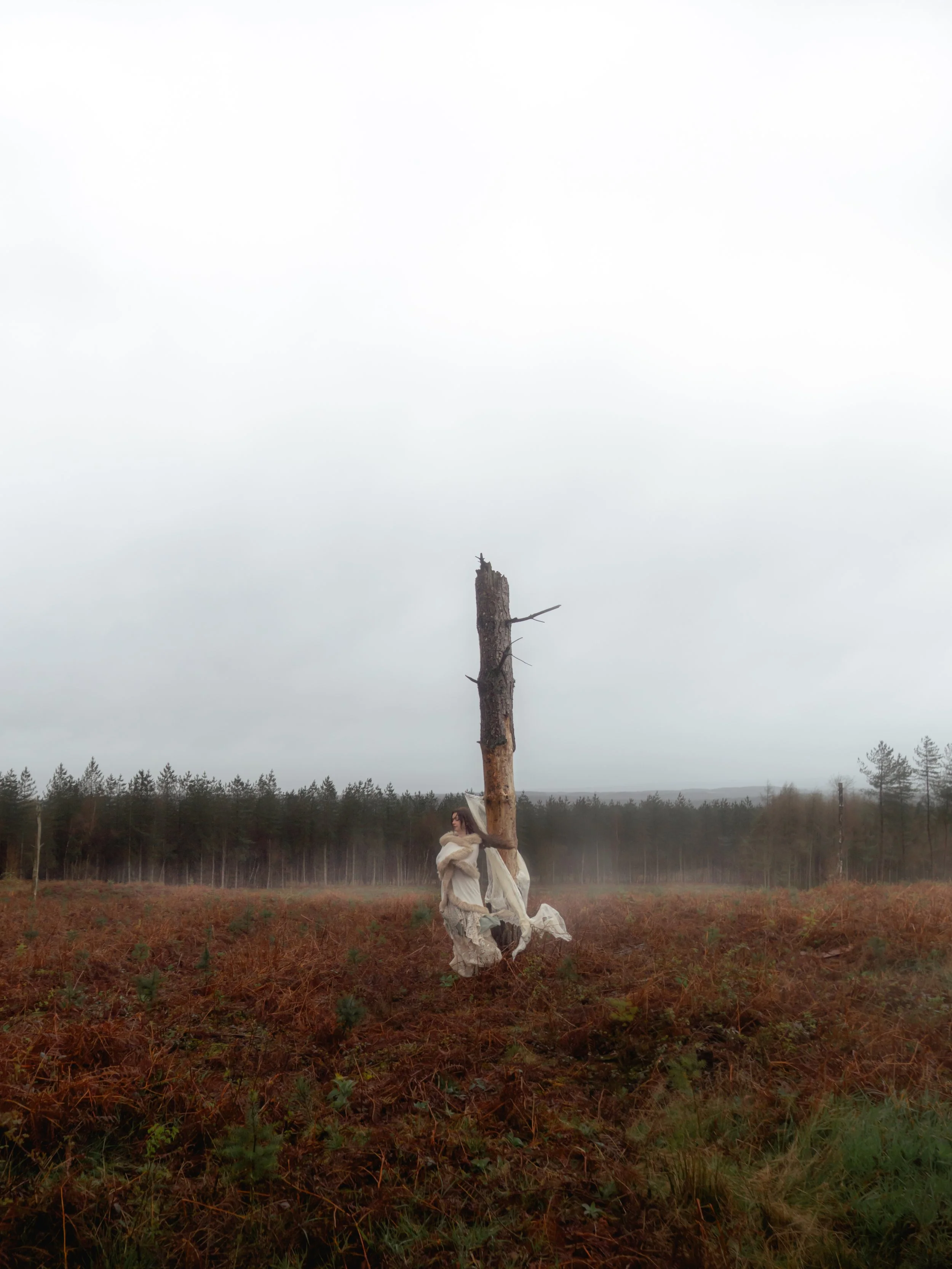 Man’s world grows with dis-enchantment. Our species tears itself away from the mythic lands we once danced with. This vision came to me in a flash, I saw Fae standing and fallen amongst deforested lands, torn to shreds by the machinery that removes us from the ground.
